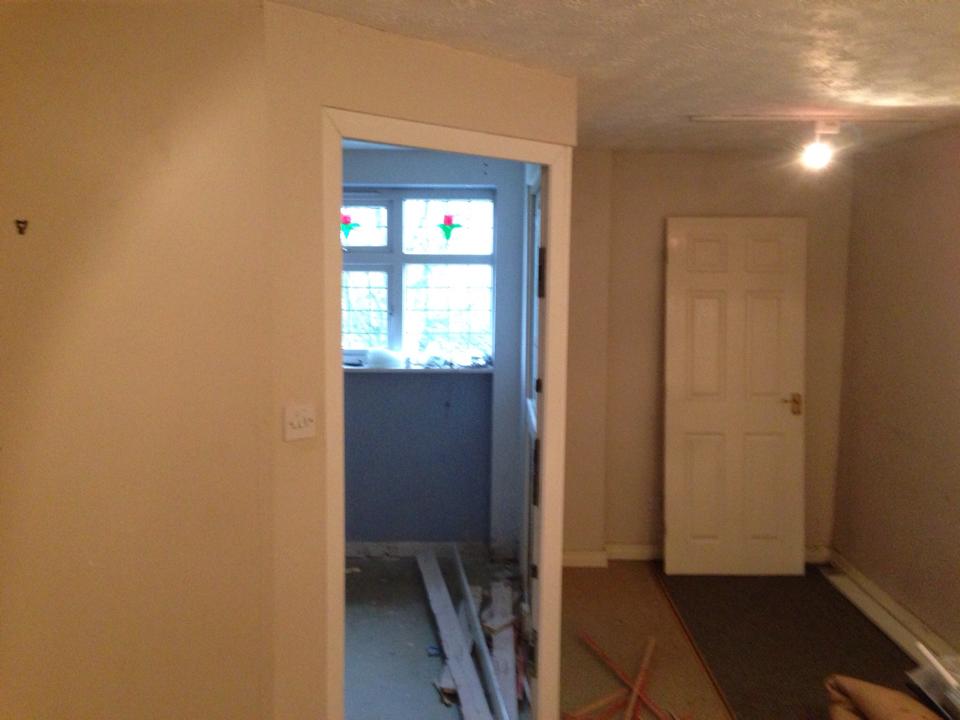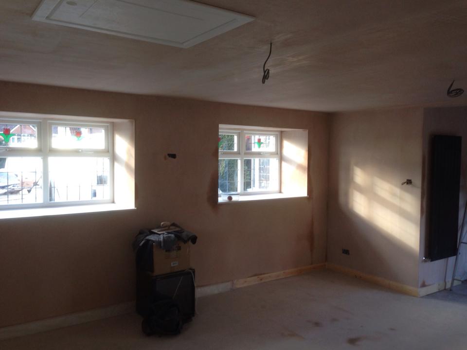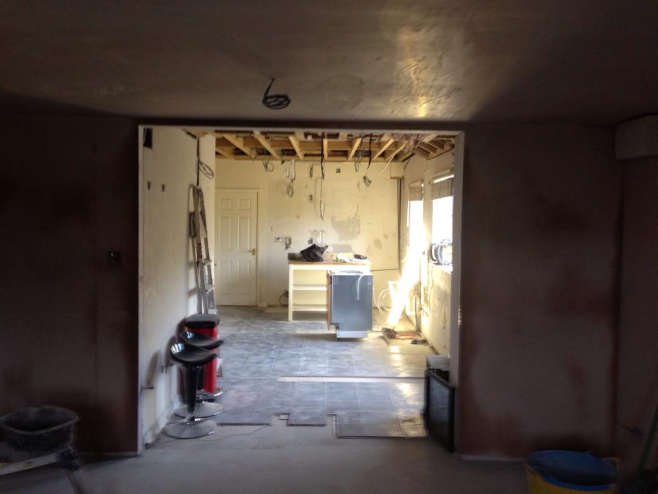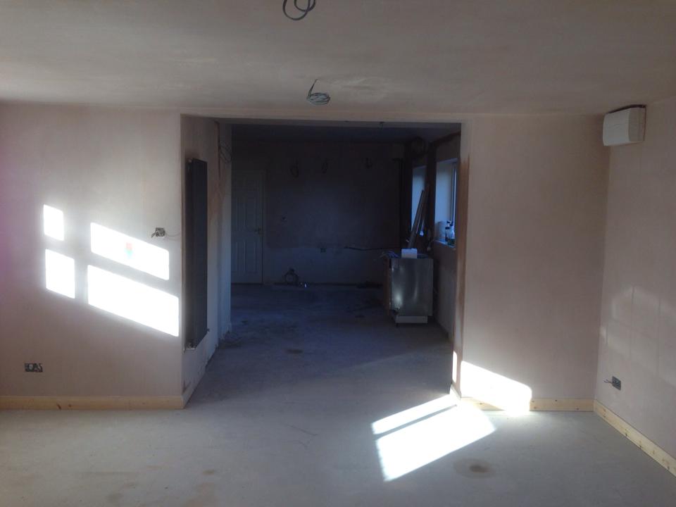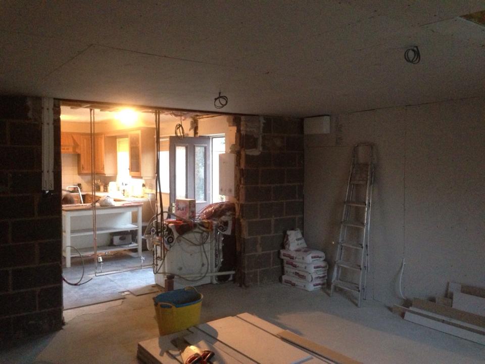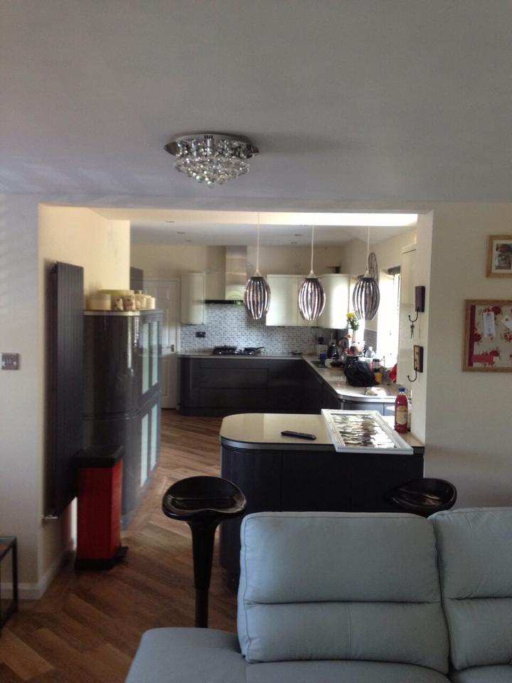This was for a lady in Westhoughton who wanted to turn her unused double garage into a more usable area, so decided to take down the wall between the kitchen and garage making a large kitchen/living area. We fixed a steel where the wall was removed and added the appropriate insulation and finished to our usual high standard.