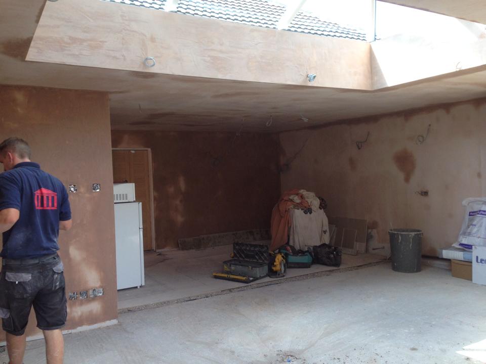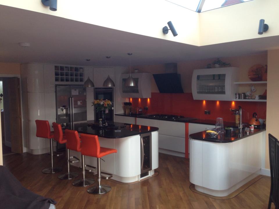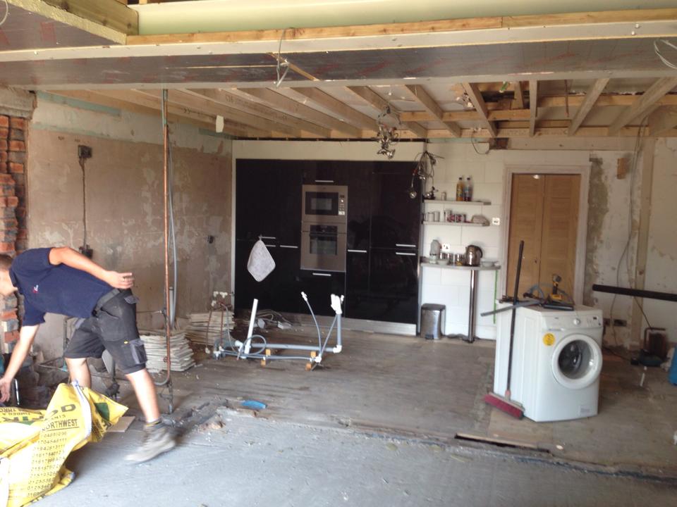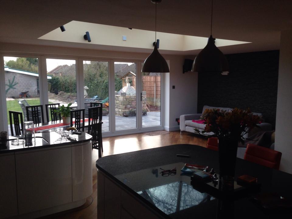 This was for the same customer where we built the recording studio. After we’d finished the music studio the customer decided to triple the size of their kitchen, by extending the current kitchen into a kitchen diner and day room complete with a glass lantern roof also adding a utility and shower room.