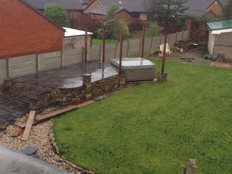 We also landscaped the garden and lay an Indian stone patio across several levels leading to the customers own hot tub.