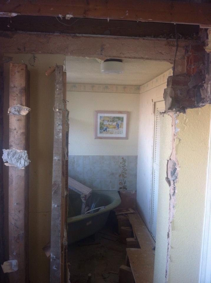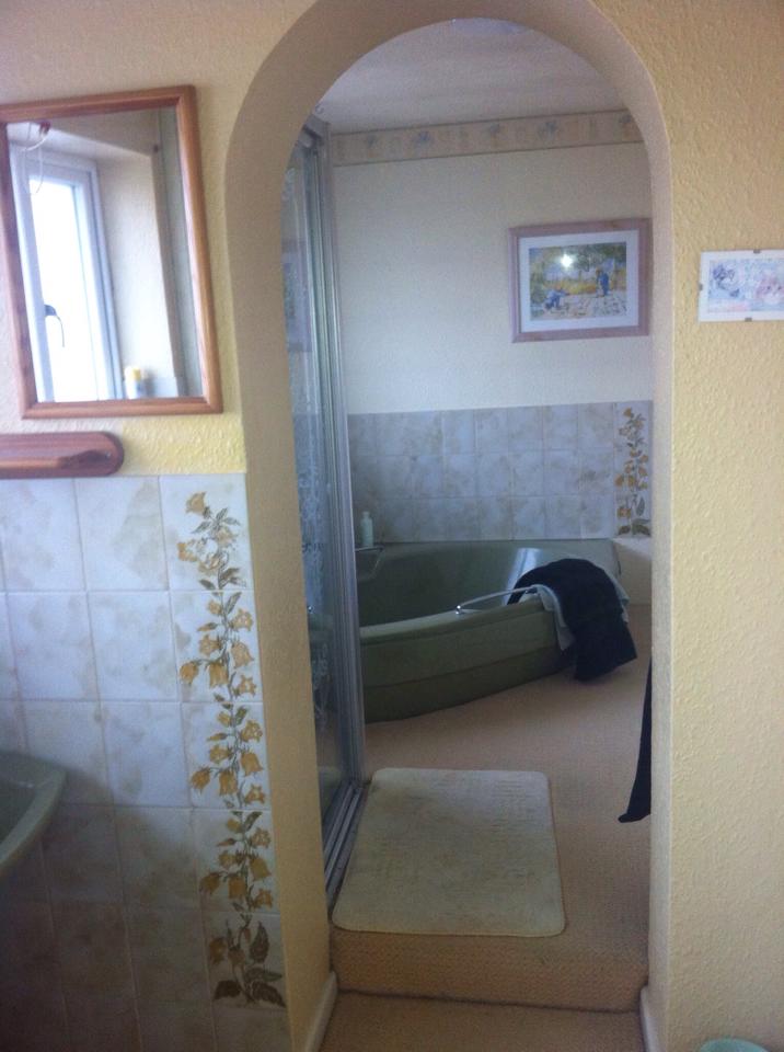 This was a very large dated bathroom with a lot of wasted space so the customer decided to divide it into two rooms. We installed a partition wall to provide an en suite to the master bedroom on one side, and a good sized family bathroom on the other. The room was taken back to brick and re boarded. We supplied and fitted all sanitaryware and finished all walls and floor with tiles chosen by the customer.