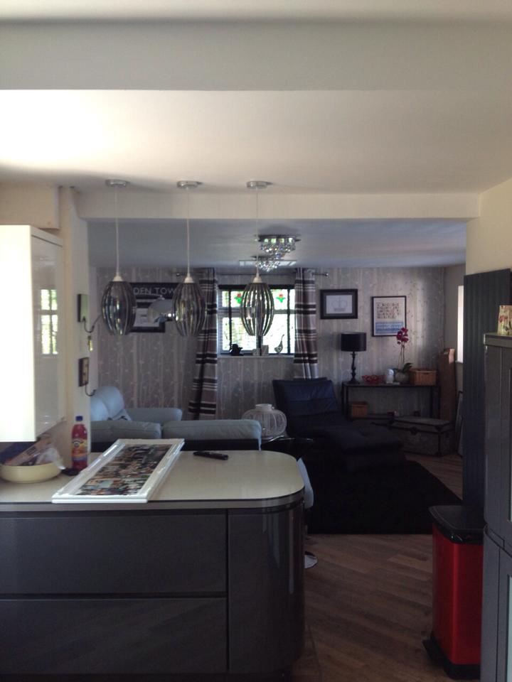 This was for a lady in Westhoughton who wanted to turn her unused double garage into a more usable area, so decided to take down the wall between the kitchen and garage making a large kitchen/living area. We fixed a steel where the wall was removed and added the appropriate insulation and finished to our usual high standard.