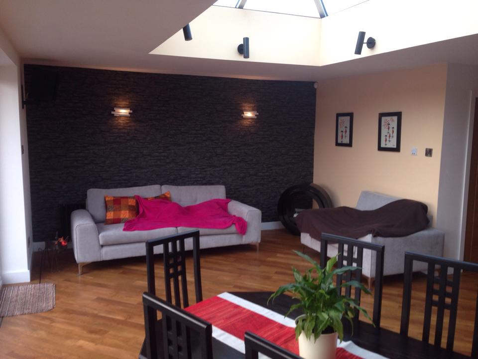This was for the same customer where we built the recording studio. After we’d finished the music studio the customer decided to triple the size of their kitchen, by extending the current kitchen into a kitchen diner and day room complete with a glass lantern roof also adding a utility and shower room.