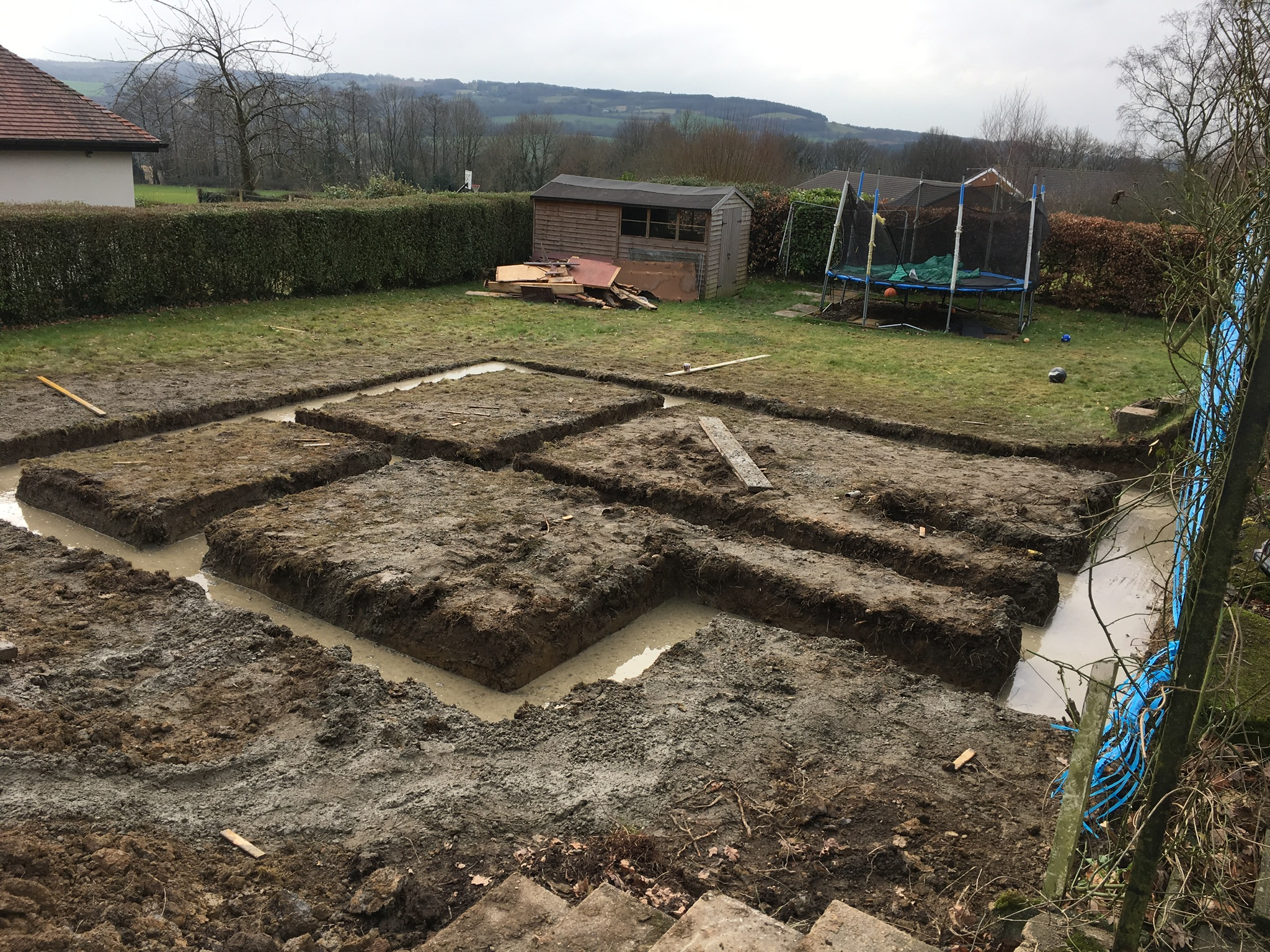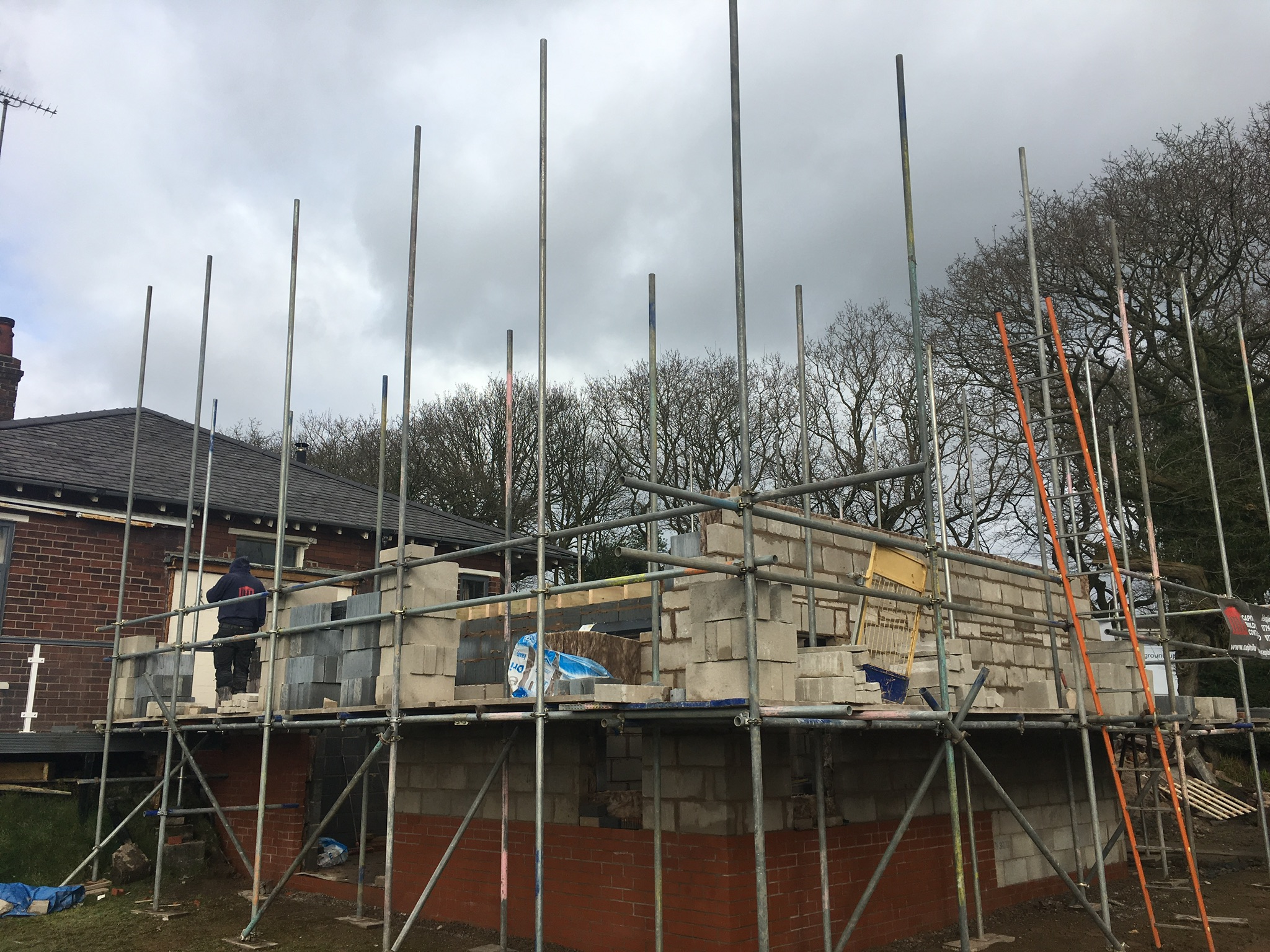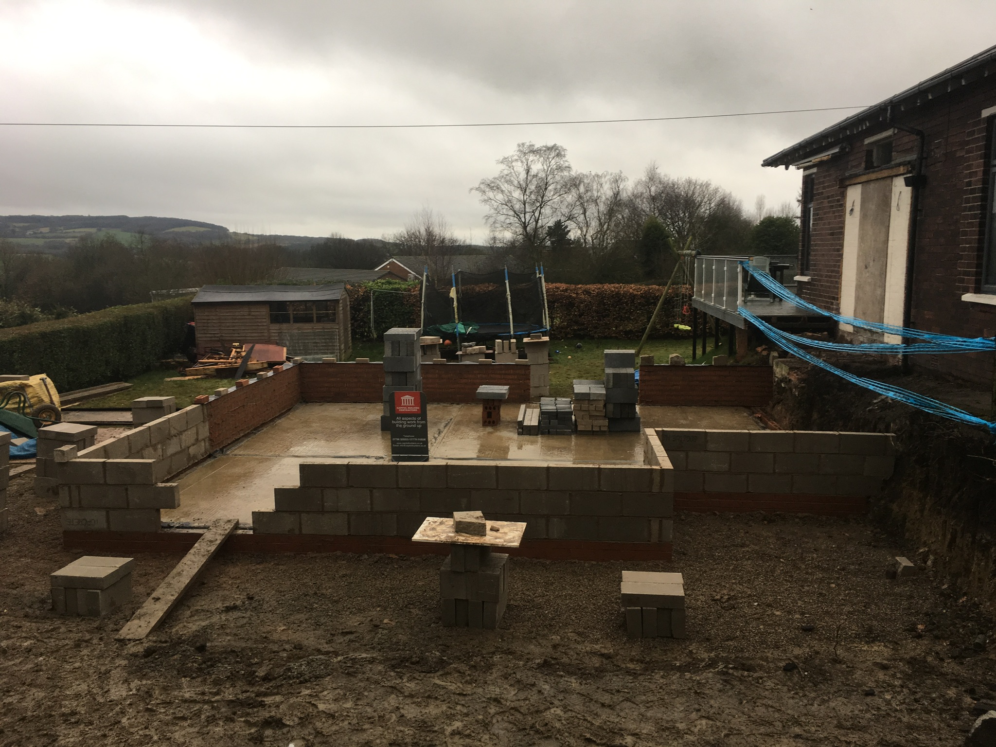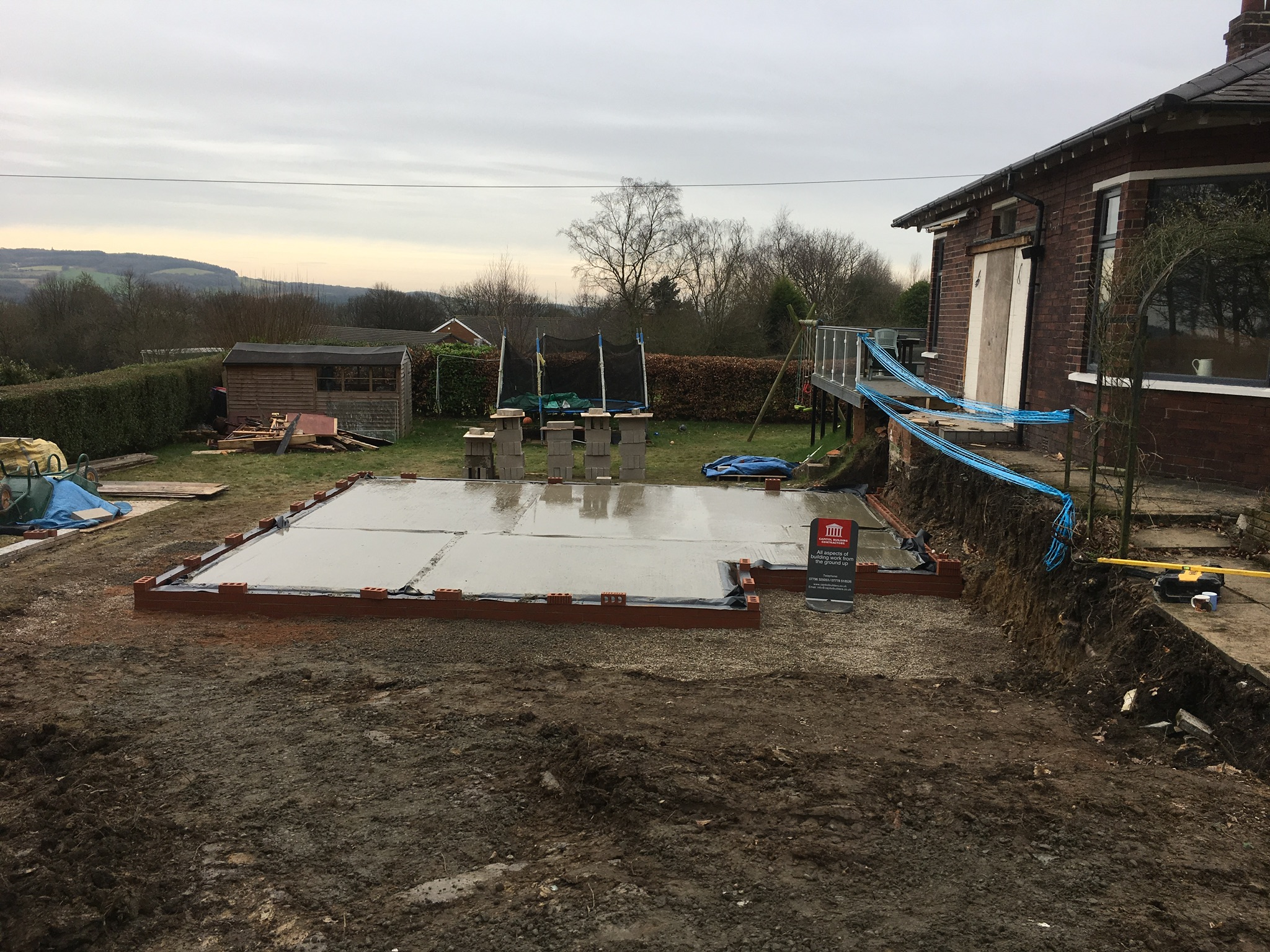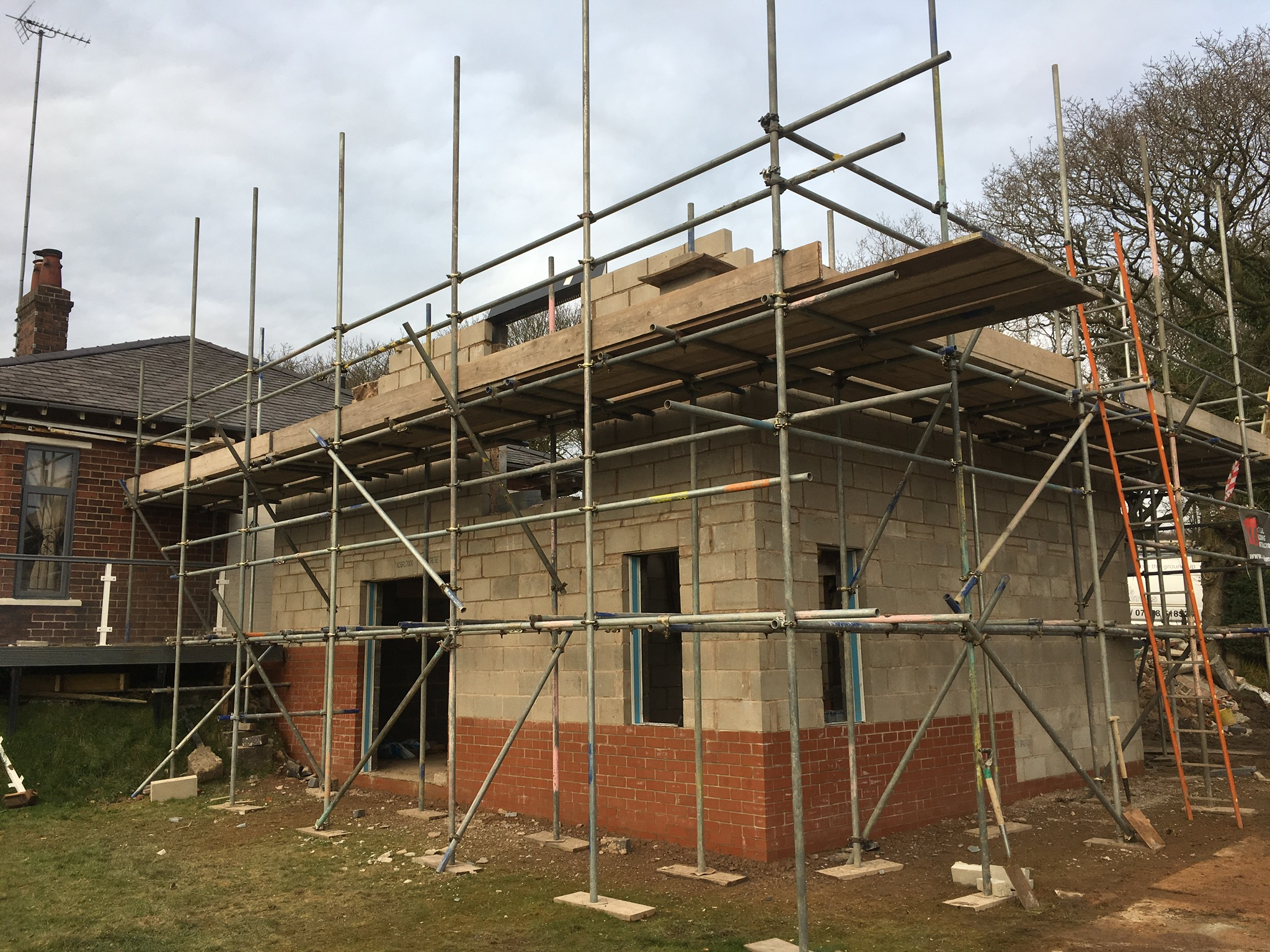 To the front of the property they wanted a raised driveway adding, which needed a retaining wall building. It was built to the engineers design which included an 1800mm wide footing and multiple sheets of steel mesh, The house and extension where rendered and the new entrance was cedar cladded as a visual feature.